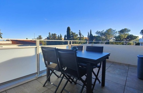 SAINT-AYGULF Sea view, 4 pers air conditioning, swimming pool, near Calanques corailleurs is located in Saint-Aygulf. SAINT-AYGULF Sea view, 4 pers air conditioning, swimming pool, near Calanques corailleurs provides accommodation, featuring Air Conditioner, Pool, Internet, among other amenities. This Apartment features Air Conditioner, Pool, Internet, to make your stay a comfortable one.