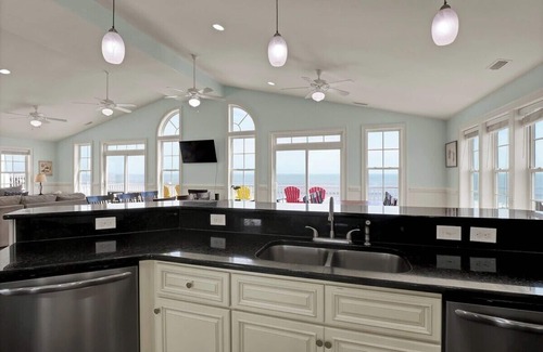 Nestled on the pristine shores of North Topsail, this stunning 11-bedroom, 11.5-bathroom retreat that sleeps 34 redefines beachfront living. "Salt and Sol" beckons with its private walk to the sand, ensuring instant access to the sun-drenched coastline. Entertaining has never been easier with a spacious kitchen on the main living level allowing sous chefs to become master chefs. 2 fridges allow for plenty of grocery storage while 2 ranges let you prepare double the meals in half the time. Clean up is a breeze with dual dishwashers. An elevator within the home makes getting from floor to floor as easy as can be. Enjoy a family night with your favorite movie on the big screen without having to leave the comfort of your home with the theatre room. Create golden lifelong memories at the beach with the kids as they splash in the pool or shell hunt on the white sands. Reset your mind and body with a calming dip into the private hot tub while you enjoy the most priceless views of the candescent sunset as it glistens off the Atlantic. Enjoy your hot, morning cup of coffee or tee on any of the large multiple back decks that showcase breathtaking water views. The top floor, adorned with expansive windows, not only welcomes in all of the natural light, but also provides an unobstructed panorama of the ocean, sure to be your muse for your description of the perfect vacation. From top-tier furnishings to beach-themed decor, every detail exudes coastal elegance and charm. This heavenly halcyon is sure to be of the most salient escapes on Topsail Island as it effortlessly blends practicality and indulgence, promising an unforgettable and sanative stay. Embrace the allure of "Salt and Sol" and make memories that echo the rhythm of the waves.