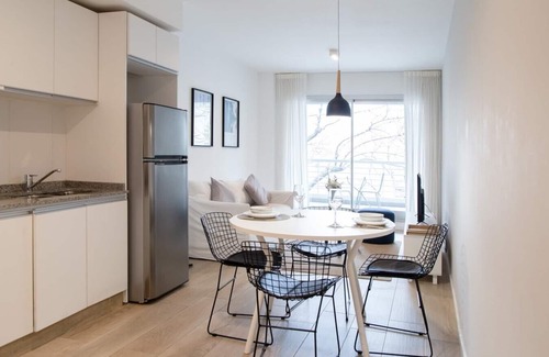 This sophisticated apartment will surprise you. The building is located just steps away from Buenos Aires' most important attractions, such as the Casa Rosada, the Congress, and the Palacio Barolo. It's the perfect choice for your next trip. The unit enjoys plenty of natural light and is tastefully decorated with a minimalist design, suitable for both short and long stays. The apartment features a Queen-size bed in the bedroom, a spacious living area with a Smart TV, and a fully equipped kitchen-dining area.