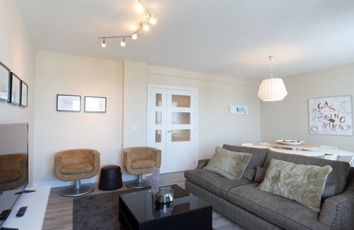 San Diego is an exclusive apartment with an amazing panoramic view of La Zurriola Beach. It is located in Gros, which is a popular neighborhood in San Sebastian, famous among surfers and with great cultural entertainment options, such as the Jazz Festival or the Film Festival. It is situated only 5 minutes away from the Old Town and the city centre. All the rooms face outside and they are very spacious and bright. The apartment has been totally remodeled using first rate materials and furniture and it is completely equipped. It has been decorated taking care of even the smallest details mixing modern and classic styles. It is situated on the second floor of a building with elevator.There are four double bedrooms, a lounge, a dining room, two bathrooms (one with bathtub and another with shower) and a modern independent kitchen, equipped with all the appliances and complete kitchenware. The lounge, the dining room and two of the bedrooms have great views of La Zurriola beach and the light that comes through the large windows is also a highlight. Three of the bedrooms have single beds of 90 cm. The other bedroom has double beds of 150 cm. The SANTA BARBARA apartment is also located in the same building. This is an interesting option for big families or groups of friends that are planning to stay in San Sebastian. All apartments stand out for their location and space. They are perfect for an unforgettable holiday in San Sebastian. This apartment has a private parking space.Apartment features: