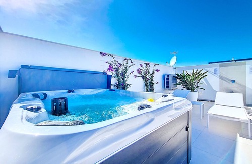 One of the villa’s most impressive features is its expansive private rooftop terrace, thoughtfully designed for both relaxation and entertainment. This beautiful space is perfect for basking in the sun or unwinding in complete comfort. At its heart lies a spacious, luxurious Jacuzzi, offering the perfect spot to relax while enjoying the serene atmosphere. The terrace also features a large, stylish outdoor kitchen, cleverly concealed behind electric shutters, providing everything needed for an effortless alfresco dining experience. With a BBQ, a cozy seating area, and sun loungers, this rooftop retreat is the ultimate place to embrace the Mediterranean lifestyle - whether you’re enjoying the warmth of the day or unwinding under the stars.