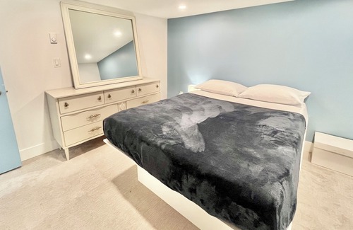 Are you planning to visit Playland? Don't waste your time travelling far to find a place to rest after enjoying exciting rides and delicious food. Instead, consider staying in a cozy two-bedroom, one-bathroom suite that is conveniently located just steps away from the amusement park. This lovely apartment is situated in a peaceful residential area, with restaurants on E Georgia only a stone's throw away. Additionally, New Brighton Beach is only a five-minute drive away.