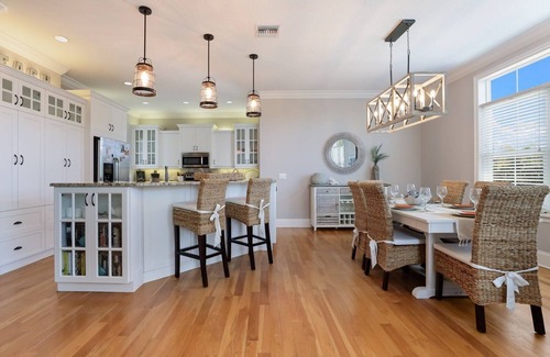 Welcome to Sand N Sea! Island ambiance awaits you at this beautifully decorated three-bedroom, two-bathroom and one-half bath, pool home. Landscaped gardens with palms and tropical plants, let you know at first sight that you are indeed on vacation! After a hard day at the beach relax in the private pool and enjoy a cocktail on one of the many outdoor seating areas. Pamper yourself with the finest amenities in this fresh and elegant dream island home.
