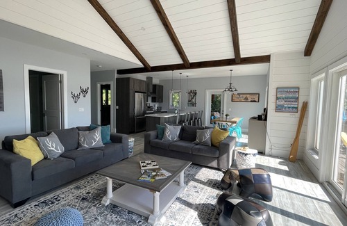 New 4 season cottage (completed in 2018) right on the water. Boasting 4 bedrooms, 2 bathrooms and tasteful decor, this cottage is just 25 mins away from towns like Bracebridge, Huntsville and Port Carling. Clean and spacious, this cottage is the perfect spot for a retreat with family or friends. With everything all on one level, and views of the water from almost every angle in the cottage, this is a hit with young families.