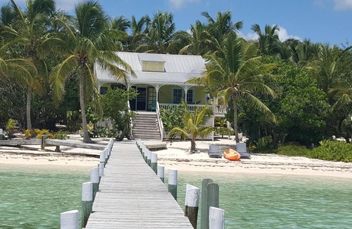 Green Bananas is a charming beachfront cottage with a private dock, sandy beach, and a constant breeze perfect for families or couples. 2 air conditioned bedrooms plus a sleeping nook, 1 1/2 baths with full kitchen, and an ideal location near dining and shopping in nearby Hopetown. Large private dock and the beach starts at the steps to the house. Perfect island escape with wifi on site. Lubbers Quarters Cay (pronounced "key") is a private island situated minutes by boat from historic Elbow Cay and Hopetown, full of quaint pastel historic cottages, seaside shops, and dining. Green Bananas is surrounded by birds and hermit crabs, as well as loads of sea life. Listen to the birds and waves during the day, and watch sea turtles swim under the dock. There is a small sandy lane that passes behind the house and weaves around the cay for walks or runs. You can even walk the lane across the island to famous Cracker Ps for amazing drinks and food.Count shooting stars and constellations at night. Sea kayak and lounge chairs to enjoy beach in front yard.
