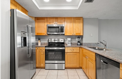 This two bedroom/2bath gulf front unit offers an amazing view of the beach and Gulf of Mexico.. The unit is fully updated with rich granite and beautiful cabinets throughout. Enjoy beautiful sunsets from the privacy of your balcony or fall asleep and wake up to the sound of waves from the master suite. The master bedroom has a large window that overlooks the beach and a sliding door that goes out to the private balcony. The bedroom has a king bed, dresser, flat screen TV and walk- in closet. The guest bedroom has 2 double beds, chest of drawers and wall closet. Bed linens and bath towels are provided for up to 6 guests in the condo. As a guest of John's Pass Condo's you will have access to our office services such as printing boarding passes and sending and receiving faxes as well as receive and send mail from our office. Our friendly staff will do their best to accommodate any requests or concerns you may have during your vacation. Please come and enjoy the beautiful beach and soothing warm breezes as well as the local attractions which include John's Pass Village and Boardwalk with its many shops, cafes, restaurants and fishing charters directly across the street from our condos. Coin operated washers and dryers are located on each floor. This is a non- smoking accommodation.