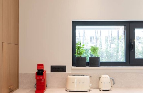 The property provides these amenities: Tumble Dryer, Freezer, Dishwasher, Grill, Oven, Microwave, Kettle / Water Boiler, Toaster, Board games, TV, Video game console, Air conditioning, Fireplace, Heating, Kid friendly, Hair dryer, Towels, Fully equipped kitchen, Wifi (Free), Toiletries, Coffee machine, Washing machine, Iron & Ironing Board, Hangers, Long stay, Cooking essentials (pots, pans, etc.), Silverware / Tableware, High chair, Table corner guards, Window guards, Fire extinguisher, Carbon monoxide detector, First aid kit, Bidet, Laptop-friendly workspace, Parking on site (Free), Beach & pool essentials, Balcony, Street parking (Free), Beach Access, Private entrance