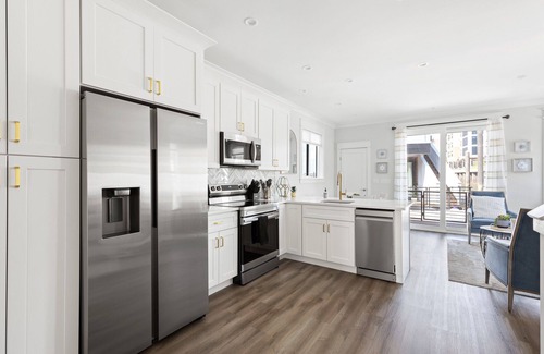 If cooking isn't your idea of fun, you may be more drawn to the beautifully decorated downstairs living space, where you can relax on the cozy couch surrounded by tall windows that overlook the Marina.
