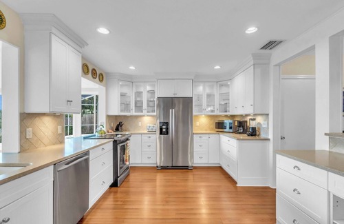 Beyond the interior, the property truly shines with its outdoor spaces. Enjoy sunny days on the expansive deck, cook up a delicious meal on the grill, or unwind around the firepit with spectacular views of the river. The private backyard is perfect for lounging or exploring, and nature lovers will delight in the chance to pick fresh mangoes from the trees. We also provide kayaks, bicycles, beach chairs, pool toys, and everything you need for a day of adventure on the water or the beach.