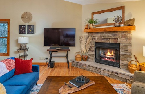 The kitchen / dining and living room area is open concept allowing an entire guest group to be "together". A large flat screen TV and gas log fireplace are focal points in the living room which provides "curl up and get comfy" seating for all. A number of board games as well as a basement equipped with a ping-pong table AND air hockey provide even more opportunity for guest groups to enjoy each other's company...together!