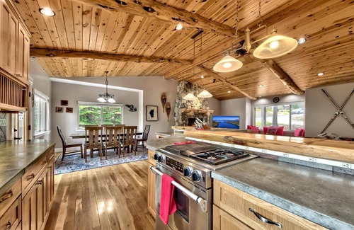 Welcome to our log cabin in the woods! Ideally located at the end of the street with access to Saxon Creek trail and endless acres of forest and miles of hiking, mountain biking, and snowshoeing from the front door. What we love about this home is the privacy and the feeling of being in the mountains and woods, with views of tall pines from inside, including from some of the bedrooms. Spread out between the two open-concept living areas, soak in the hot tub, find yourself in a competitive game of pool, warm up by one of the two stone fireplaces, prepare a meal for family in the custom kitchen, or just be lazy and lay around on our large sectional and watch a game or a movie. Although tucked away from the hustle and bustle of town, the cabin is also only 8 miles from town and 7 miles to Lake Tahoe, with very easy access to Heavenly, Sierra at Tahoe, beaches, grocery stores, and restaurants,