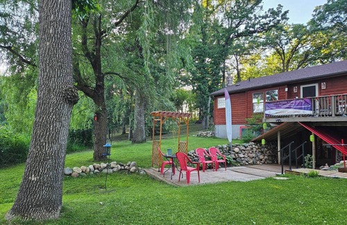 Your home away from home in Alexandria with High Technology EESYSTEM Scalar Energy Field sleeping Therapy room promoting health and healing as you sleep. This lower level features 1 queen bed, 3 twin beds, 1 sofa bed, and 1 futon. Enjoy the convenience of WiFi, iron, heating, hair dryer, and AC. The bathroom comes equipped with a hair dryer. It's easy to see why you'll be able to unwind at our place.