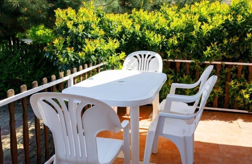 "Scarlett 1", 3-room apartment 100 m2, on the ground floor. Comfortable and beautiful furnishings: living room with satellite TV. 1 room with 3 beds. 1 room with 1 french bed. Open kitchen (4 hot plates, oven, dishwasher, microwave) with dining table. Bath/shower, sep. WC. No heating option. Large terrace 30 m2, patio. Facilities: washing machine, children's high chair, baby cot (extra). Parking (fenced 2 cars). EG19022740