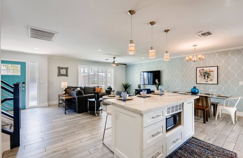 Our home offers 1900+ sq ft of renovated living space! The open concept kitchen, dining and living spaces allows for the family to converse while hanging out throughout the home. The casita offers a separate master suite and is attached just to the back of the house connecting to the patio area.