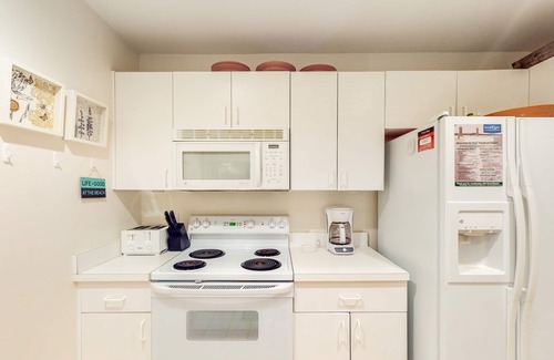 Near Sea Colony's Great Pine Lake, this first floor, one-level 2-bedroom (and den), 2-bath garden-style condo makes a great base camp for your next Coastal Delaware adventure. Featuring a large wrap around screened porch (with wooded view), this resort retreat features a living and dining area, well-equipped kitchen, den, full hallway bathroom and two bedrooms, including the master suite. Central air conditioning, washer, dryer and more. 3 TVs, 2 DVDs, Wifi. Fireplace is not available for guest use.