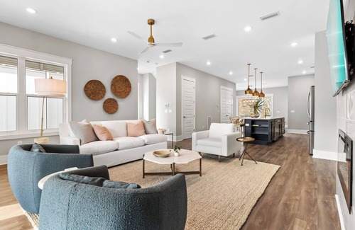 ABOUT THE HOME: Love of the Gulf of Mexico runs deep in this luxury 30A getaway located in Twin Palms. "Sea Dweller" is a four-bedroom, four-and-a-half-bathroom newly constructed home that is so close to the beach that you can hear the waves while sit upon the rooftop terrace grilling your favorite food and soaking in incredible views of the 30a area. This home is gleaming with cozy coastal comfort and has everything you'll need to make for a beautiful vacation on the beach. Beyond the high-end furnishings, Sea Dweller comes with a golf cart. With a quick ride to 30a Avenue for all your shopping and restaurant needs. The hardest part of your vacation will be deciding between lounging in the temperature-controlled spa on the rooftop terrace, sitting around the living room enjoying your favorite game or movie, or walking down the white sand beaches soaking in a stunning sunset; all enjoyed from this picture perfect coastal home.
