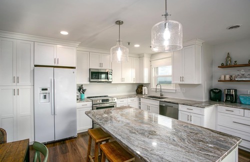 Indulge in the culinary delights of the fully stocked kitchen. Savor your meals at the dining table or step out onto the balcony and enjoy the sound of the ocean waves while grilling up a feast.