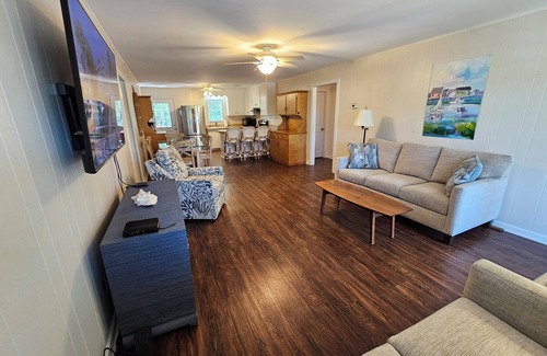Get ready to relax in this 4-bedroom house in Edisto Island. This beautiful property offers a serene escape with 1 king bed, 2 full beds, 3 twin beds, and 2 queen beds. With 2 bathrooms equipped with a hair dryer and shower, guests can unwind in tremendous comfort. Our place is equipped for both long or short stays to make your holiday one to remember.