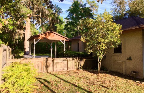 Come and stay awhile! (2 week Minimum - priced accordingly) Relax in the shade of the moss draped, ancient oaks and cedars St. Mary's is famous for. Seagrove House is just 2 blocks from the Waterfront Park and live music; playground; kayak, fishing tackle, and bicycle rental; restaurants, shops, museums; the Cumberland Island Ferry landing, and everything St. Mary's has to offer. Enjoy viewing the wildlife - and also the regular festivals and live music at the park. Bring your well-behaved dog and experience the peace and privacy of a large, screened porch and fenced back yard. Convenient to Kings Bay Naval Base, and the beaches. Cable wireless and a printer/ copier for remote work. There is space in the side yard to park a boat trailer, and a carport to load and unload your car out of the rain. The house was built in the '40s, with a third bedroom and second bathroom added above a family room a few decades later. All was updated just a few years ago. The exterior is the traditional tabby - just like many of the buildings from the early 1900s and before. This is our winter home, we have a navy family, and we welcome those who need a temporary furnished home.