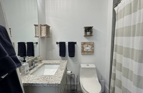Located in Marshfield, this house is a dream. With 4 bedrooms, including 1 king bed, 4 queen beds, and 2 xl twin beds, it's perfect for families or groups of friends. The master and one of main bedrooms have very large closets to organize all your belongings. The master has a desk just in case you wanted to work. Master also has its own private balcony for relaxing. Three full bathrooms and one half bathroom. Master has soaking tub. Separate laundry with washer and dryer and iron. Stay connected with WiFi. This fantastic property offers a beautiful and comfortable space for guests to relax and unwind. Huge outdoor deck for seal watching and cooking out with rocking chairs, lounge chairs and pub table that seats 8. Large kitchen and open floorpan family room. The kitchen is stocked with all you could need. Coffee maker that has pot and k cups, microwave, toaster oven, blender, hot water kettle and wine fridge. Dining table, 2 sofas, separate table to play games of which there are many. Located at esplanade within two minute walk of restaurants and live music. Green Harbor beach area is about 20 minute walk. The only property with large side rock yard to park your boat if you bring one along. The harbor is half mile up the road. Starter toiletries in each bathroom. Outdoor shower under deck. The City of Boston is a 45 minute drive, Plymouth to see the infamous rock is 30 minutes, Cape Code is one hour drive.