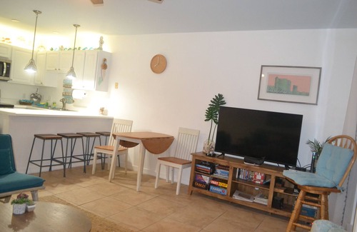 Just steps from the beach, See the view from your Balcony!! Very charming condo with a spectacular view of the beach off of the top 4th floor balcony. Sleeps up to six with a excellent floorplan. Master bedroom has a King bed, sofa is a pull out and bunk beds are located in the hall way. This condo is within steps to the beautiful sandy beach and walking distance to Rosamond Johnson Beach.