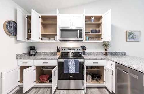 Built in 2024, these brand-new spaces have fully stocked kitchens, a smart TV in every room, and an in-ground, pool!