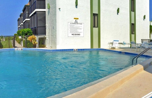 The complex is right on the Gulf of Mexico with a nice seating-area to get to know the other residents, and a nice sandy beach. While there you'll see fabulous sunsets, dolphins, pelicans, etc. The heated swimming pool is just a hop & skip from the condo. Each condo has covered parking and a storage locker. Although there is a 2-week minimum-stay required most of the year, weekly rentals are allowed over Christmas & Easter holidays. (Please note, rental rates do not include the departure cleaning fee, 12% tax, booking fee, or security deposit.)