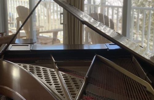 After a day on the slopes come home to warm up by the gas fireplace, take the dog for a walk through the private wooded trail or build a snowman and roast marshmallows on the fire pit. Feel at home in the well equipped kitchen with gas stove, after dinner cozy up to watch a movie on the 65" smart tv. Gaze out the wall of windows to see the shimmering lights of Blue Mountain or watch the village fireworks from the wrap around balcony. Wind down with a glass of wine and listen to your favourite vinyl records or gather the family around the grand piano. It's your vacation, start making memories.