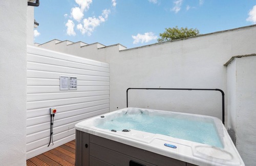 Separate Toilet.. Gas central heating, electricity, bed linen, towels and Wi-Fi included. Welcome pack. . Front garden with decking and garden furniture. Balcony. Hot tub for 6 (private). Private parking for 3 cars. No smoking. Please note: There are slopes in the garden.. This beautiful detached holiday house sits in an elevated position in the pretty little harbour village of Portpatrick. With simply stunning views over the village and harbour, and looking out towards Ireland, this property has the wow factor inside too. The house is decorated beautifully and the main reception rooms and kitchen are situated on the upper level to take advantage of the uninterrupted views over the village and sea. The kitchen/diner boasts modern appliances and everything you would need to rustle up a family dinner and where better to sit and relax with its high ceilings and impressive pine trusses with views over the village. From here, steps lead down to the large living room with double doors opening onto the balcony, again to make the most of those fabulous views. The bedrooms continue that luxury feel, the master has an en-suite shower room and two of the rooms have garden access, so the perfect place to sit with your morning coffee.