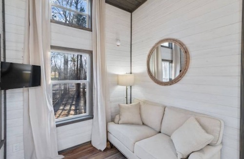 Enjoy your stay surrounded by nature and wildlife but still close to town. Gated tiny home community with dog park and street lights. This tiny home has a queen size bed in the master and two twin beds in the bunk room. Great setting and still 3.5 miles from Athens town square and minutes to Lake Athens. Relax by the firepit or on your private patio. Fully equipped kitchen and all necessary utensils plus washer & dryer. Enjoy the community firepit just steps away.