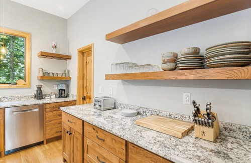 Discover a unique private 30-acre sanctuary at Rumbling Ridge! Located next to North Carolina's Green River Gorge conservation area, this unique vacation rental property gives yourself or your group a chance to be completely surrounded by the nature of the mountains, yet still close enough to Asheville attractions. Featuring a sunken hot tub, the wrap-around deck at Rumbling Ridge encourages seamless indoor/outdoor living with folding sliding doors, grilling, and lounge areas, along with a screened-in section for relaxation in every season. The sound of the rushing river travels up from the gorge below while enjoying outdoor activities. Expansive windows merge nature with indoor comfort. After sunset, enjoy the ambiance created with the living room Constellation Projector. Rumbling Ridge is modern in its design, with open living space on the main level and three bedrooms on the upper level, each with its own TV and contemporary ceiling fans. For family time, build a crackling wood fire in the raised fire pit and toast marshmallows, or warm up the wood stove for a cozy movie night. Cooking is a breeze thanks to the well-equipped gourmet kitchen, and there is plenty of seating for meals with a large dining table and an island breakfast bar. Taking it easy, explore the half-mile-long driveway which is perfect for a walk or bike ride or, create an adventure by following the challenging trails that are highlighted on the property map that is included in your reservation. Rumbling Ridge borders the Green River Game Lands, a 12,000-acre tract of land preserved through a conservancy easement, and the North Carolina Wildlife Commission. On-site outings include a short hike to the Cliffs for a mountain view and the challenging Hemlock Ridge Trail that extends 0.4 miles down to the Green River. From there, link up with trails that lead you to hidden waterfalls, swimming holes, and Class V rapids in the river narrows. After a day spent exploring the Blue Ridge Mountains and the nearby city of Asheville, unwind in the hot tub with the stars bright in the night sky. Find the peace and quiet you have been craving at Rumbling Ridge! This Asheville vacation rental is located in Saluda and is approximately 45 minutes from downtown Asheville. • 2-Story Home on 30 Acres of Private Land • 3 Bedrooms: 1 King Bed,1 Queen Bed, and 2 Full Beds • 3 Full Baths • Main Level: Full Shower Bath • Upper Level: Main Suite/Bedroom One - King Bed, Attached Full Shower Bath; Bedroom Two - Queen Bed; Shared Full Bath; Bedroom Three - Twin Bed and Full/Twin Bunk Beds • Bonus Sleeping: Sleeper Sofa in Main Level Living Area Important Property Notes • 4WD/AWD Recommended. During winter months or inclement weather, a 4WD/AWD vehicle is recommended. We recommend one with sufficient clearance (i.e SUV, Truck, or raised Sedan). • VIP: Please be aware that you must complete the waiver of liability to stay at this property. If this form is not completed within 24 hours of the Vacation Rental Addendum being signed, your reservation shall be canceled, thank you. • We strongly recommend CSA Travel Insurance to protect your reservation against unexpected events such as inclement weather, medical emergencies, or travel delays. Each reservation staying 29 days or less includes our exclusive Mountain Discovery Pass, which includes one Biltmore Estate pass, in addition to a ticket for other seasonal attractions that are sure to delight and entertain! This special offer is only available with Carolina Mornings and is our special gift to you during your stay. (Ticket(s) must be used during your stay. Terms apply, please inquire for more information.) This reservation includes a non-refundable damage waiver policy. If you prefer to use a refundable security deposit, please contact our office to provide a check for the security deposit and we will refund the damage waiver. Thank you! CAROLINA MORNINGS, INC. IS A NORTH CAROLINA CORPORATION IN THE BUSINESS OF REAL ESTATE BROKERAGE AND DOING BUSINESS AS CAROLINA MORNINGS, LICENSE #11216.