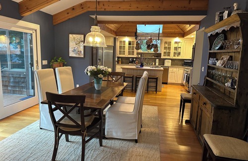 Wellness and comfort go hand in hand here — the home includes a Peloton bike and free weights for those who want to keep their fitness routine. And when it’s time to gather, there’s room for everyone — whether it’s for a holiday celebration, a family reunion, or a restorative long stay.
