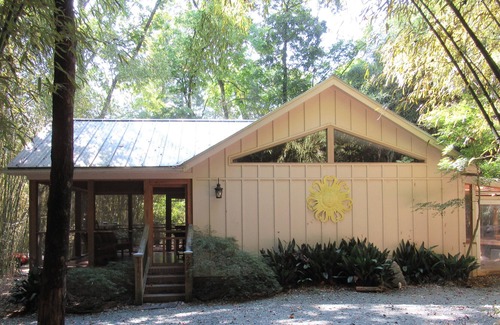 The Bamboo Bungalow is a 1000 sq. ft. home nestled in a bamboo forest on a 10-acre private compound within the Burlington city limits. Built in 2013, it shares the property with four other rentals by a two-acre scenic pond. The bungalow has a spacious great room/kitchen that connects to a beautiful screened porch via two sets of French doors. The bedroom with a king size bed has a separate door that opens onto a private deck. There is a large walk-in steam shower off the bedroom and a stacked washer and dryer. Both rooms have vaulted ceilings with plenty of ambient light. The fully-furnished kitchen features custom cabinets, a rough cut granite countertop, and stainless steel appliances including a dishwasher and built-in microwave. The dining table is custom made from granite and fabricated steel tubing. The den features hickory hardwood floors and a sofa bed. A 50-inch flat screen TV and high speed wireless internet provide the opportunity to work away from home. The driveway winds through a grove of bamboo creating total privacy and giving the home a uniquely Asian setting. When the weather permits, the French doors can be opened for an open-air feel. If you are looking for a place to relax and unwind, this is the place. It is a perfect spot for a romantic getaway or as an alternative to a hotel room stay. Special rates are available for long term stays or rentals of other properties on the pond, including the Lodge at Longpine, York Place at Longpine, Waterfront Oasis and the Tiny House at Longpine. A well-behaved dog is welcome.
