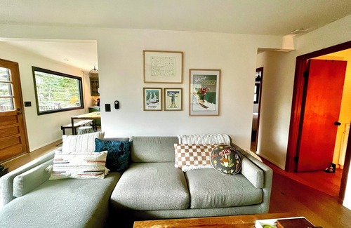 This dog-friendly home has 3 bedrooms and is fully furnished. Downstairs features an open kitchen and living space, full bathroom, and two bedrooms (one with a king bed, the other a queen). Upstairs, a versatile loft space awaits, complete with a third bedroom (queen bed), work desk, a serene library nook, space to roll out a yoga mat, and a small balcony overlooking the sprawling yard.