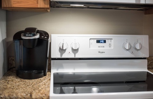 The kitchen includes a full compliment of cookware, silverware, and small appliances. Coffee by Keurig, bring your favorite K-cups. A small gas grill with complimentary fuel is provided. A full sized washer/dryer unit is down the hall when you need to wash a load of clothes.