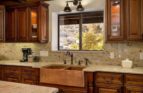 Surrounded by an acre of robust foliage and stark desert terrain, this home's Modern Spanish interior provides guests with the utmost comfort and amenities.