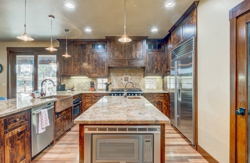 The gorgeous interior of this spectacular home is enhanced by soaring ceilings, large windows, and high-quality finishes. The well-equipped, gourmet kitchen features high-end Sub-zero appliances, expansive prep surfaces, and all the accessories, utensils, and dishes you need to whip up everyone's favorite recipes. Dine at the adjacent table for six or sit shoulder-to-shoulder at the expansive breakfast bar. After meals, gather in the rear living area to stream your favorite channels, or meet up in the front room to enjoy the warm glow of the gas fireplace while you play a few of the provided board games.