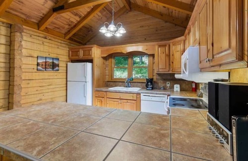 The cabin has everything you need for a quiet weekend or a longer stay. Fully equipped kitchen with a stove, oven, microwave, refrigerator, dishwasher, and coffee maker as well as dishes and utensils. The kitchen provides ample space to create memories together with great counter space and a separate island. Washer/dryer included. Sleeps 5 comfortably. The main bedroom has a king bed with a view of the forestry and access to the back deck via a sliding glass door. Enjoy access to a private hot tub located on the back deck, along with a grill for your enjoyment. The smaller bedroom has a twin bed and there is an additional sleeping area in the attached loft that hosts a queen bed. On chilly nights, enjoy cuddling up next to a wood stove fireplace. You will find this nature haven to be peaceful and inviting, and the hosts to be responsive and caring to ensure you have what you need during your stay!