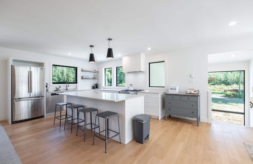Situated against a spectacular backdrop of Mt. Currie, this spacious 4-bedroom/3.5-bathroom standalone house is the perfect home for your next vacation. Newly renovated in 2020, this 3,500 sq/ft farmhouse has kept its charm (complete with red barn for ski/bike storage!) but boasts top-of-the-line appliances and furniture for ultimate comfort and convenience. Upstairs, soak in the peace and quiet from the Juliet balcony in the primary bedroom, complete with ensuite. Here is where you'll also find two guest bedrooms. Cook a restaurant worthy meal in the full-size kitchen on the gas stove or relax and take in the alpine views from the open-concept living room. Downstairs, there's a woodburning fireplace and a media room complete with a smart TV, along with the 4th bedroom. Need to get in some work? Take full advantage of the private office, decorated with comfort in mind. Want to spend some time outdoors? This property comes with a basalt-lined gas fire pit to keep you warm. Restaurants, stores, and local breweries are easily accessible by car; in the summer, take the valley loop bike trail and stop for a dip at One Mile Lake.
