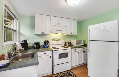 This secluded and serene, lakefront home is the perfect place for an Olympic Peninsula vacation you'll never forget. Wake up each day to the sound of the water lapping against the dock and a panoramic view of Lake Sutherland. Whip up quick breakfasts or full-course dinners in the well-equipped kitchen, share meals and conversation in the quaint dining area, or chill in the living area and watch TV or just stare out the windows. Right outside, there's a furnished deck over the water where you can drop a line and fish for cutthroat trout.