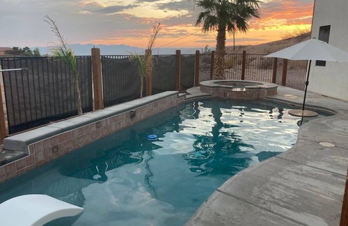 Relax and enjoy the desert landscape. Secluded, private and spacious villa with heated pool and hot tub. Completely custom home, beautifully decorated with designer furniture throughout. Minutes away from the Laughlin bridge and Katherines landing but a world apart. Quiet, peaceful, private, with unbelievable views of the stars, city lights, mountain landscapes. One of a kind desert get away. (enquire for RV details)