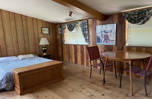 The cabin (called a ''camp'' in the mountains) was lovingly hand-crafted from 26 kinds of timber by a master carpenter/hippie. They had their first child in the only building a barn at a time when many city dwellers were fleeing suburbs in the 1970s. There is central air, radiant heating if you'd rather, a grill and smoker, a fire pit, satellite television, a washer/dryer/microwave, a new shower-tub, games, and plenty of books for reading during your stay. Wi-Fi has not reached the area but you have a booster for the cell phone and can hotspot and work online comfortably.