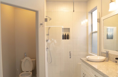 Unwind at this stunning private home located near the San Joaquin River. Enjoy a secluded backyard with a pool with a waterfall. There is seating on the top on the backyard that oversees the River, perfect for unwinding! Nestled in Fresno, which is near Yosemite National Park and Sequoia National Park, this home offers nature and city!