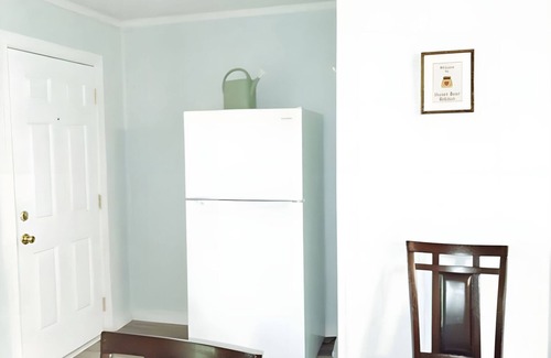 Honey-bear is a cozy two-bedroom cottage with a screened in porch, pastoral and mountain views, a grill and full kitchen. Shared covered motorcycle parking, by request.