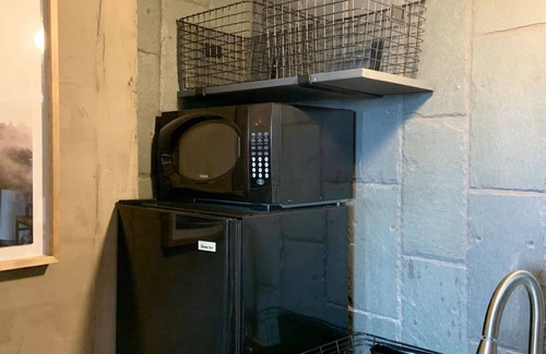 Guests will have the privacy and exclusive use of the entire treehouse. Located at the back end of our 94 acre farm which neighbors several thousand undeveloped acres, guests are guaranteed a true getaway. When you step through the French, mahogany doors you are faced with a 9’x20’ span of glass wall looking out over the valley to the distant mountains. The 380 square foot floor plan has a 5x8 full bath with double head shower tiled in antique, reclaimed roofing slate. The jade basin sink sits atop a real tree root retrofitted to accommodate it. The kitchenette is also tiled in the reclaimed roofing slate and has a mini fridge, microwave, toaster, gas stove with small oven and coffee service. The dining space is graced with a beautiful Italian marble bar table with a reclaimed wood base. The cozy living area has a relaxing gas fireplace and the sofa is super comfortable. Stretch out in the king size bed with memory foam mattress. The wrap around deck features a longe area, a high top dining set and a gas grill. Grab the hammocks and hang them under the treehouse or go for a hike and find your perfect spot. Guests are also welcome to take the short hike to our private four acre lake. Perfect spot for a picnic and you can use our canoes and paddles. Bring fishing gear, if you like. You can catch and release or have a fish fry.