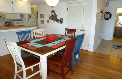 A two-minute walk from this centrally located Inlet Point condo will put you on the beach in one direction and on the creek in the other. Comfortably furnished second floor condo offers screened porch and sundeck overlooking one of two pools. The primary bedroom suite has an adjustable privacy screen between the bedroom and garden tub.