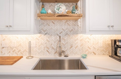 You have found your perfect beach cocoon in this lovingly appointed, ocean-view townhome. Enjoy the stunning ocean view right across the street from your living room deck and the private master bedroom deck. Even from the back of the house, you can sit in the beautiful new dining settee and enjoy a peek-a-boo of the waves across the street! Cross the street with your beach toys and walk only two houses down to spend a glorious morning on the beach. Enjoy all of the local restaurants, arts and crafts festivals, and pier fishing that Kure Beach has to offer at the Pier, only three-tenths of a mile away. The upper level hosts two bedrooms, and the main level is all about living, dining, relaxing, and cocktails on the ocean-view deck. Beautifully updated throughout, with custom cabinetry, shiplap details, new fixtures, and appliances, let Happy As A Clam soothe and cool your soul with its spa tones and gentle hospitality. Do you need to bring more people? Rent Happy As A Clam as a whole house to add on the lower level with two more bedrooms with beds for 6 more people, another bathroom, and a second kitchen.