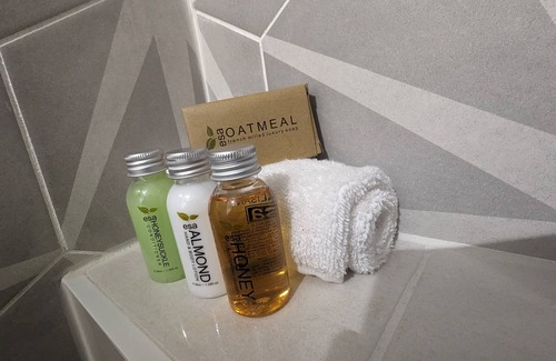 The private bathroom is beautifully tiled and has a modern and sophisticated yet classic vibe, and is well-stocked with fresh white towels and high-end toiletries to meet your needs.