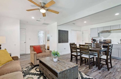 Experience a cozy and charming retreat in the heart of Grand Prairie! This beautifully renovated 3-bedroom, 2-bathroom vacation home offers a perfect mix of modern comforts and a welcoming ambiance. With a fully equipped kitchen, spacious, thoughtfully designed rooms, and a private fenced backyard, this home is ideal for family vacations or get-togethers with friends. Whether you're here to relax or explore, our property provides the perfect base for your stay.