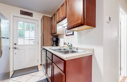 The bright interior has been tastefully updated with modern design and amenities throughout. The full kitchen is equipped for home cooking with a set of stainless steel appliances, including a dishwasher, and a handy array of cookware, counter gadgets, and serving utensils. Family meals can be enjoyed together at the dining table set for six. Or, fire up the gas grill and treat your guests to an alfresco meal out on the deck. After the day's activities recharge with a sauna session at home. Gather around the wood-burning firepit for s'mores and starlight conversation. In the evenings, unwind in the living room with shows and movies on the smart TV.